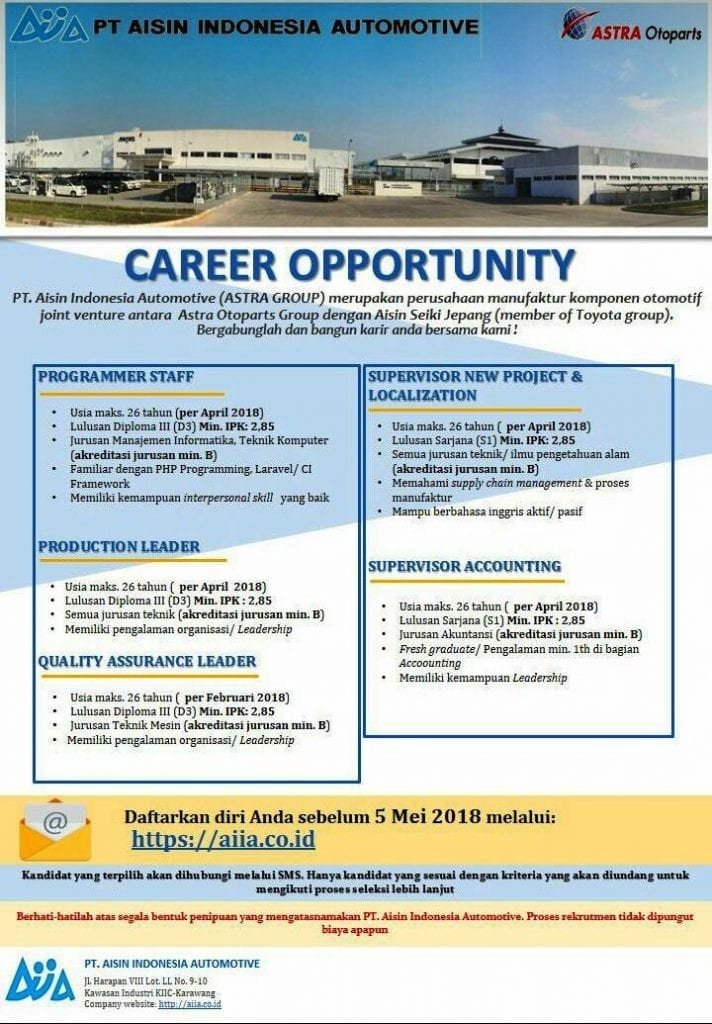 Follow twitter dan instagram @admcareers karena tahapan-tahapan proses rekrutmen akan diumumkan via media sosial tersebut. Hati-hati terhadap segala jenis penipuan ya Sahabat. Astra Daihatsu Motor tidak pernah meminta biaya sepeserpun dari kandidat pada setiap proses rekrutmennya. Semangat dan Sukses Sahabat!
