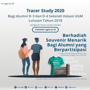 Tracer Study 2020, Bagi Alumni D-3 dan D-4 Sekolah Vokasi UGM Lulusan Tahun 2018, pengisian tracer study dapat dilakukan melalui : simaster.ugm.ac.id.