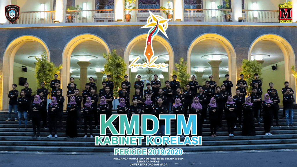 KMDTM SV-UGM periode 2019/2020 mengusung nama kabinet KORELASI. Secara umum korelasi adalah hubungan yang baik dan saling bersinergi antar pengurus KMDTM SV-UGM sehingga dapat mencapai suatu tujuan bersama. Korelasi merupakan singkatan dari kata koordinatif, kreatif, lintas sinergi. Koordinatif merupakan langkah saling koordinasi antar departemen sehingga bisa mencapai kesepakatan bersama yang terarah dan satu tujuan. Kreatif dalam kabinet korelasi ini sendiri menggambarkan bahwa mahasiswa Departemen Teknik Mesin sepatutnya memiliki kreatifitas dalam berbagai hal. Sedangkan Lintas Sinergi merupakan kontribusi antar departemen yang ada di KMDTM SV-UGM untuk mewujudkan KMDTM SV-UGM yang bersinergi. selengkapnya