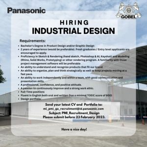 PT Panasonic Manufacturing Indonesia are currently opening vacancies, for those of you who have work experience for 2 years or a fresh graduate in the field of graphic design or product design.