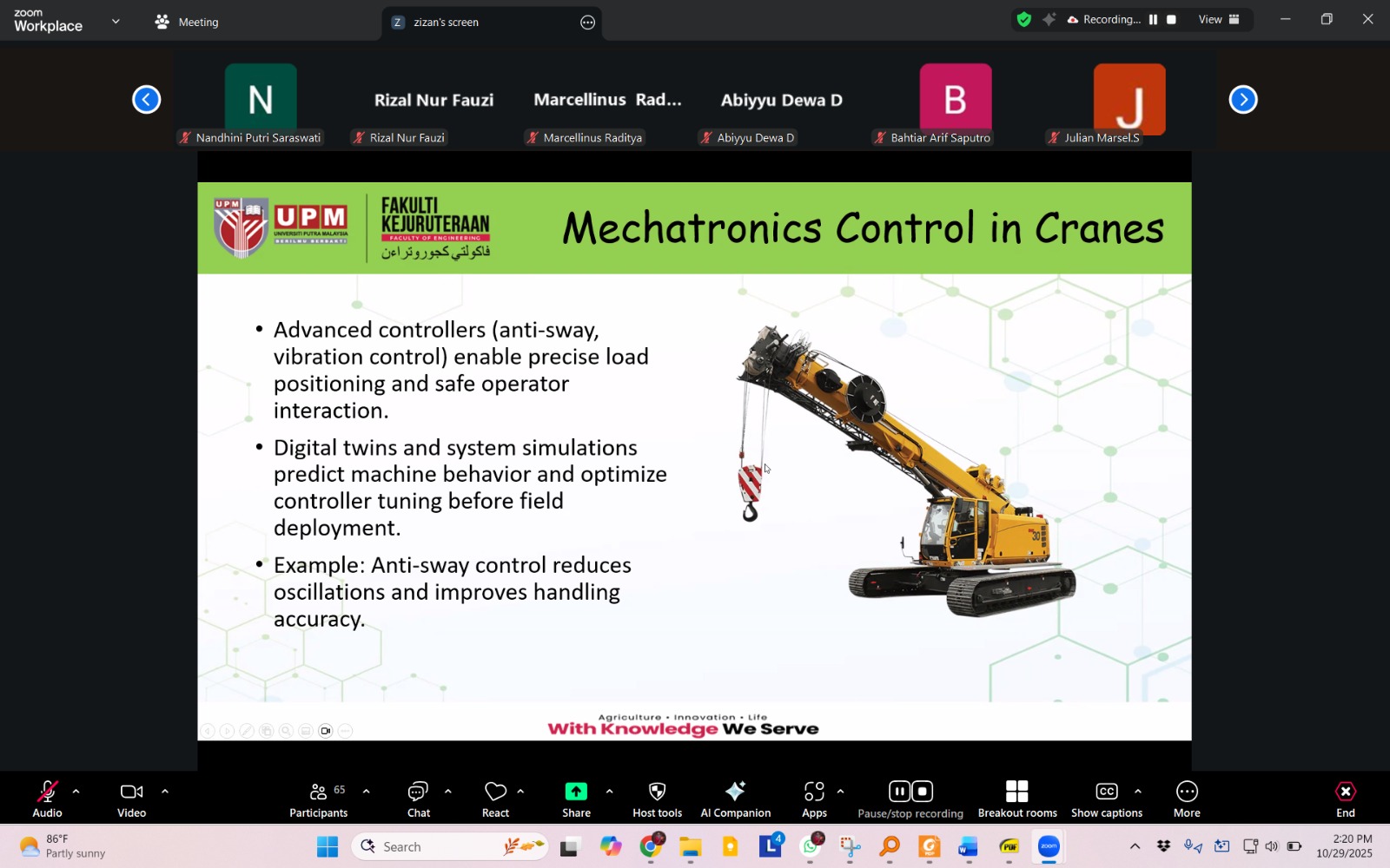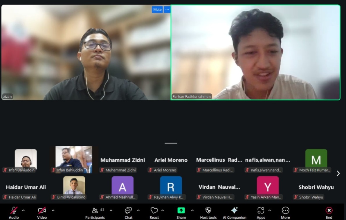 The session ran smoothly from 13.30 to 15.00 WIB. During the Q&A session, students posed questions related to mechatronic implementation in heavy equipment, the integration of artificial intelligence (AI), and challenges in developing sensor–actuator-based intelligent systems.