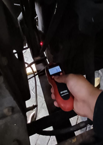 Pengujian laju aliran bahan bakar dilakukan pada keadaan unit Wheel Loader sebelum dilakukan perawatan dan pengukuran laju aliran bahan bakar setelah dilakukan perawatan mesin. Tujuan dari pengukuran ini untuk membandingkan keadaan mesin, keadaan proses pembakaran mesin Diesel penggerak Wheel Loader WA320-8. Pengukuran laju bahan bakar dengan metoda mesin dalam keadaan tanpa beban dan dengan memvariasi putaran mesin, untuk variasi putaran mesin dengan mengatur pedal gas dari meja operator. Untuk menyetel ukuran putaran mesin dengan menggunakan tachometer digital yang diarahkan di roda gigi poros engkol. Roda gigi poros engkol diberikan tanda reflektif (stiker, cat khusus). Tanda reflektif (stiker) ini di tempatkan di roda gigi poros engkol tepatnya pada roda gigi flywheel dan dapat tertangkap sebagai sinyal putaran mesin yang dikirim ke tachometer digital. Kegiatan tersebut mendukung SDGs 9: Industri, Inovasi, dan Infrastruktur yaitu berfokus pada peningkatan teknologi, efisiensi energi, dan inovasi dalam sistem pembelajaran serta penelitian alat berat berbasis mesin diesel ramah lingkungan.