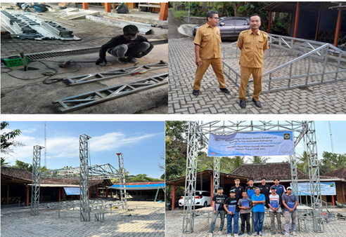 Hasil kegiatan menunjukkan bahwa tenda hajatan yang dibuat telah memenuhi aspek kekuatan, estetika, kemudahan pemasangan, serta efisiensi penyimpanan. Tenda ini dirancang sebagai sarana multifungsi untuk kegiatan warga dan memiliki nilai komersial.