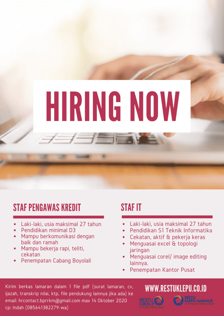 Info Lowongan Kerja Jumat, 9 Oktober 2020