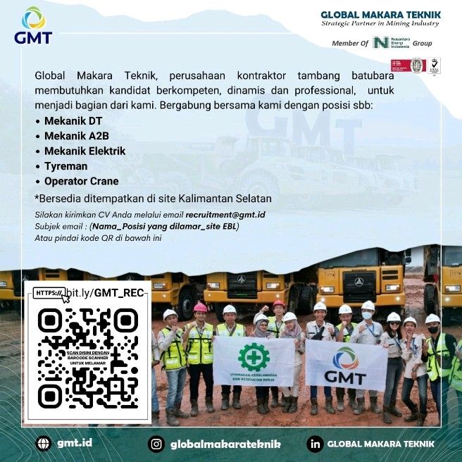 Kirimkan lamaran anda ke email fachribasyir@gmail.com & recruitment@cde-coal.com