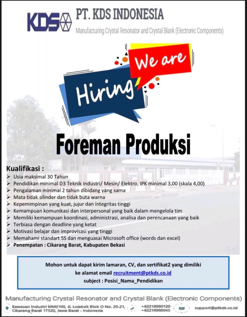 Kami dari Mayora Group (PT. Tirta Freshindo Jaya) Plant Ciherang, Bogor. sebagai perusahaan FMCG yang terkemuka. Saat ini sedang membutuhkan kandidat potensial untuk meniti karir sebagai: