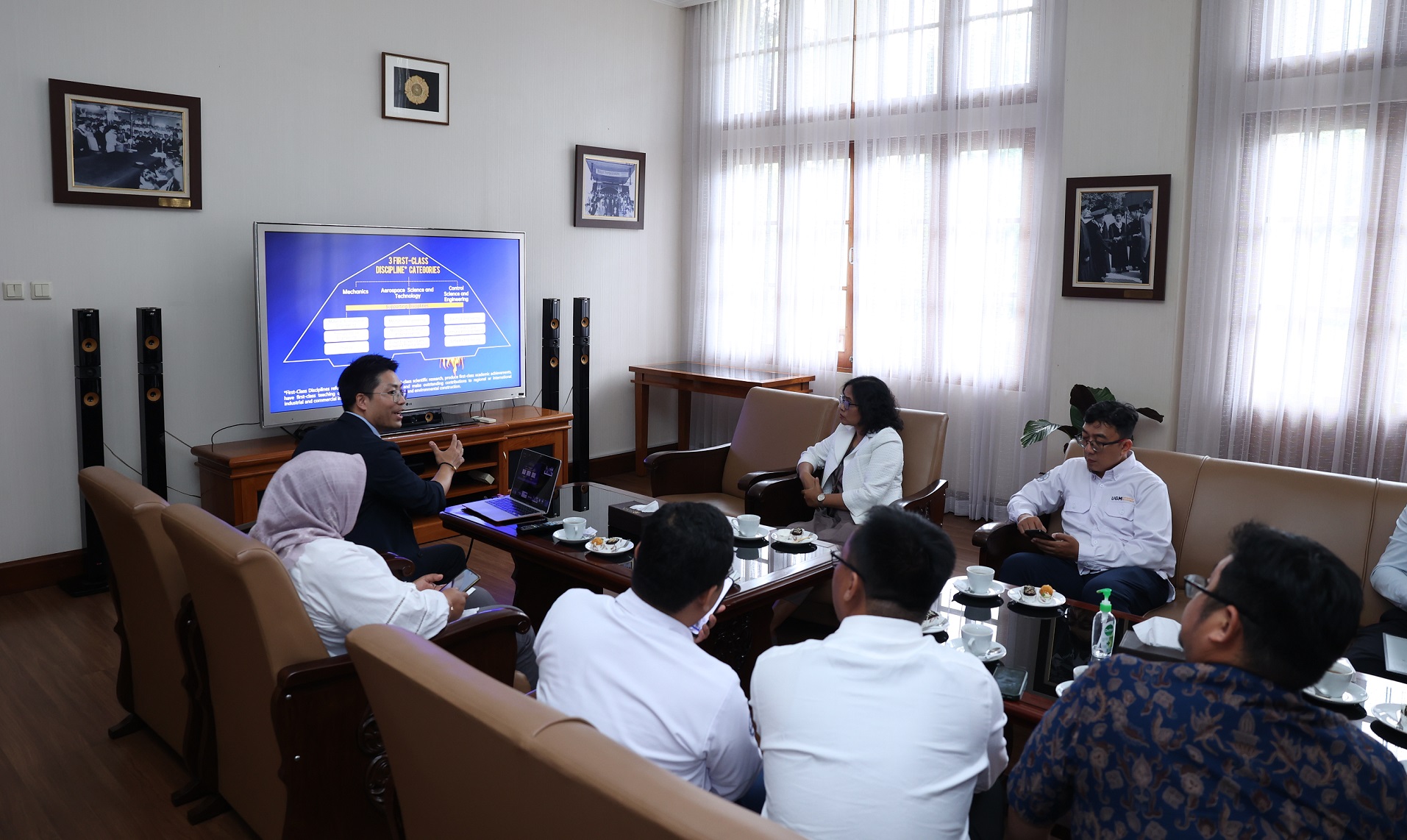 The NUAA delegation was led by Prof. TAO Yong, Vice Chairman of the University Board, accompanied by Prof. KONG Chuiqian, Dr. ZHANG Guoquan, Dr. ZHANG Lin, Dr. WU Weiwei, and Prof. JIN Quanyuan. From UGM, the meeting was attended by university and faculty leaders, including the Dean of the Faculty of Engineering, the Dean of the Vocational College, the Vice Dean for Finance, Assets, and Human Resources of the Vocational College, the Director of Partnerships and Global Relations, and the Head of the International Cooperation Subdirectorate.